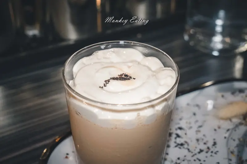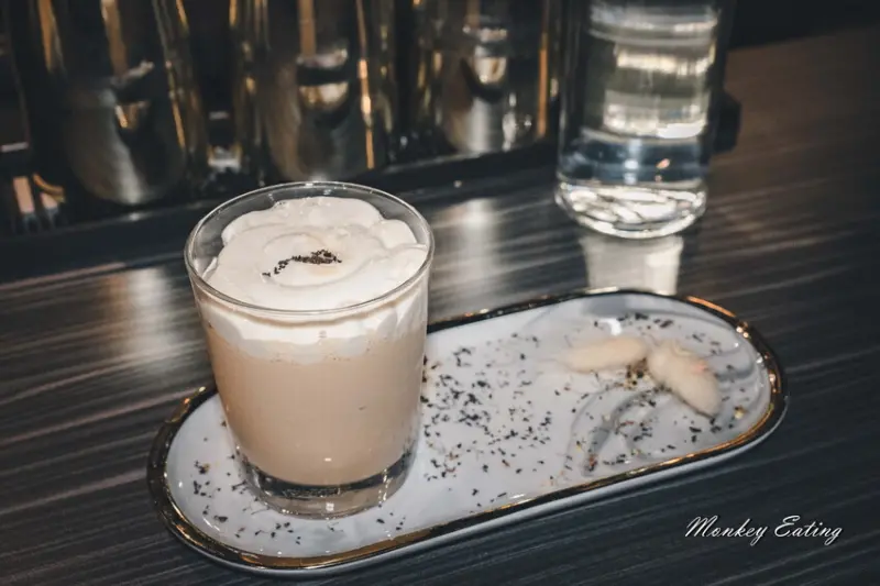以伯爵紅茶、榛果、玫瑰糖下去調配,上面擠上楓糖鮮奶油泡沫,濃郁的乳香就像在喝奶蓋一樣,紅茶的茶韻與基底酒帶來不一樣的層次風味。這杯調酒不僅女生喜歡,連我喝了一次也直接愛上。