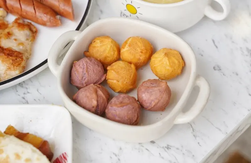 「QQ地瓜球」外皮酥脆,內餡軟Q,咬開來還有滿滿香甜的芋泥,每一口都好滿足!
