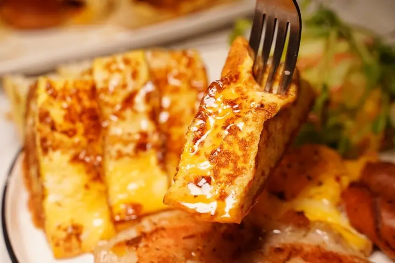 俗話說「早餐吃得像皇帝」,那一定要來份超猛的「秘汁焢肉千層蛋餅」,超大的焢肉,搭配酥脆的蛋餅皮,咬下去油脂在嘴裡化開,肥而不膩口還帶有膠質感,早餐來一份,包準你元氣滿滿。