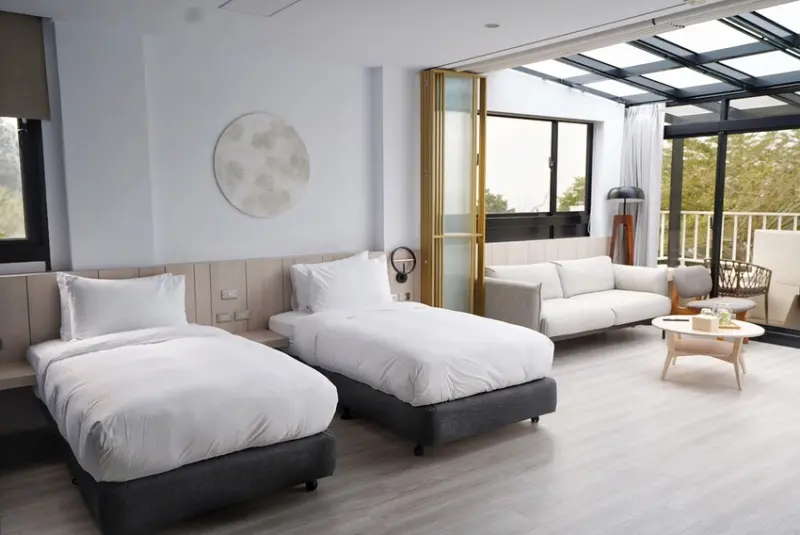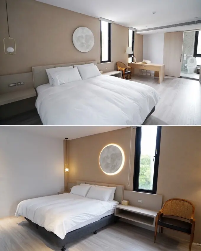 「MODA & the MOON 碩玥民宿」房型總共有五間雙人、兩間四人房,全部共可住18人,也可以包棟住宿,每一間房都是以大地色與木質調為主,簡約無印風格,住起來真的超舒服。