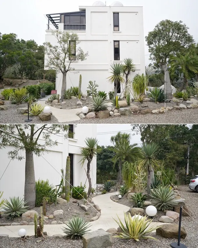 民宿周圍種滿仙人掌,還設有營火區,白皙的建築融合露營風的設計,這裡真的很chill,沒想到苗栗公館竟然有這們美的地方。