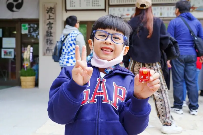 另外,這裡也可以買御守喔!愷愷也挑了一個書包御守,超可愛的吧?小小的御守不但有保平安的寓意,還可以當作小飾品掛在書包上,既實用又有紀念價值~