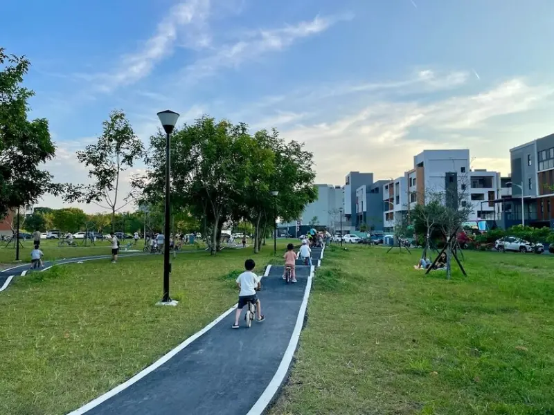草坪區有好幾塊,面積都很大,都等著在開發更好玩的特色公園遊戲設施。而且,四週的住宅顏值都不錯,住在這裡應該是很舒服,整個區域都充滿了希望。