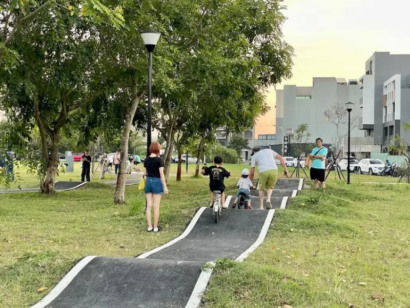 很多小朋友在這裡玩滑步車、腳踏車、滑板車,通過刺激的連續上下坡道,讓小朋友一圈又一圈,完全不想走。