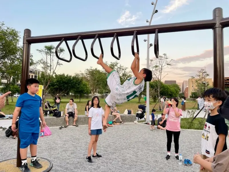 而且這些鋼鐵製遊具,在大太陽下曬會很燙,小朋友來這裡玩打赤腳,家長要留意一下喔!