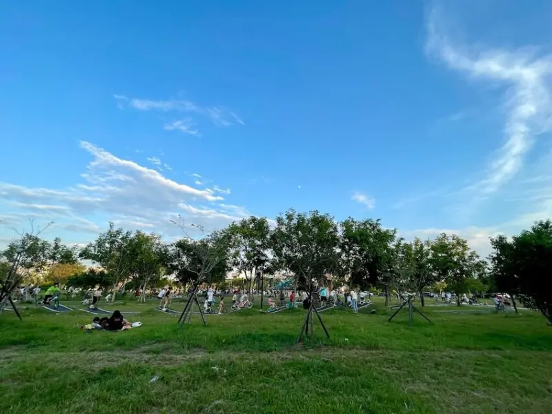公五特色公園的一缺點是遮蔭太少,樹木也都大顆,中午來會被曬到不要不要的。所以,最佳前往時間建議是在下午3點以後。