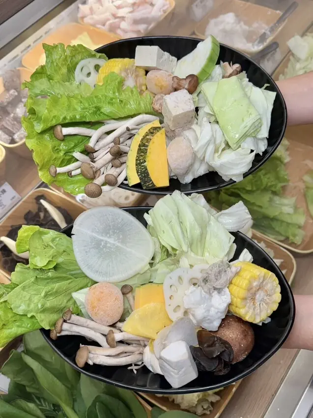 ▼自助吧近百種食材琳瑯滿目!多種蔬菜火鍋料品項相當豐富多樣~全部都是無限拿取!點一鍋最便宜的套餐也才$420,附加這麼狂的自助吧我覺得超可以!CP值很高