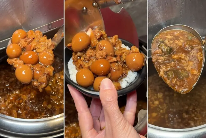 ▼我媽最愛的滷肉飯,肥肥的滷肉充滿膠質鹹香入味~裡頭還有滿滿的鳥蛋。(我媽這個小鳥胃拿整整一大碗還有好多顆鳥蛋,竟然還全部吃光光,就知道這是真的好吃XD)另外還有鹹鹹甜甜的瓜仔肉飯