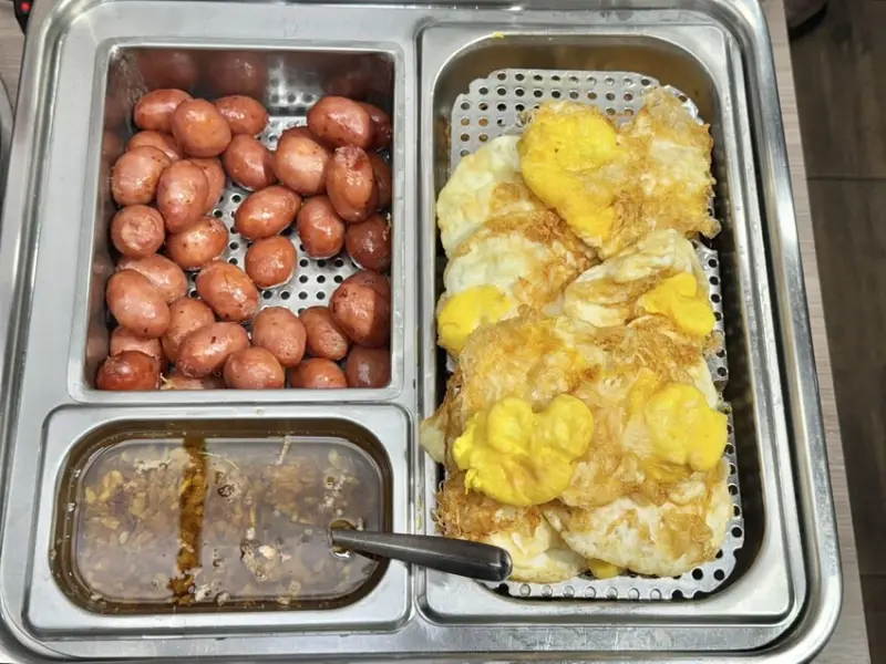 ▼肉之間真的是沒在怕你吃!竟然有麻油炸蛋無限供應!還有古早味香腸。