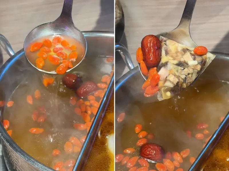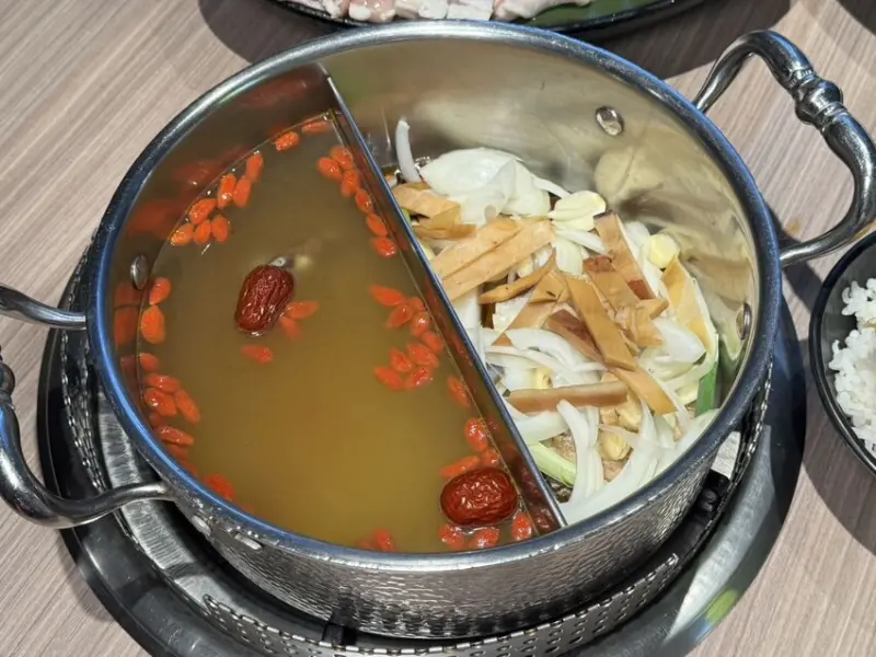 ▼我跟我媽都很愛這鍋「藥膳養生雞湯」,加入多種中藥材和大量枸杞和紅棗,湯頭溫潤香甜,充滿中藥香氣尾韻帶點甜味,感覺喝完都補了滿滿精氣神