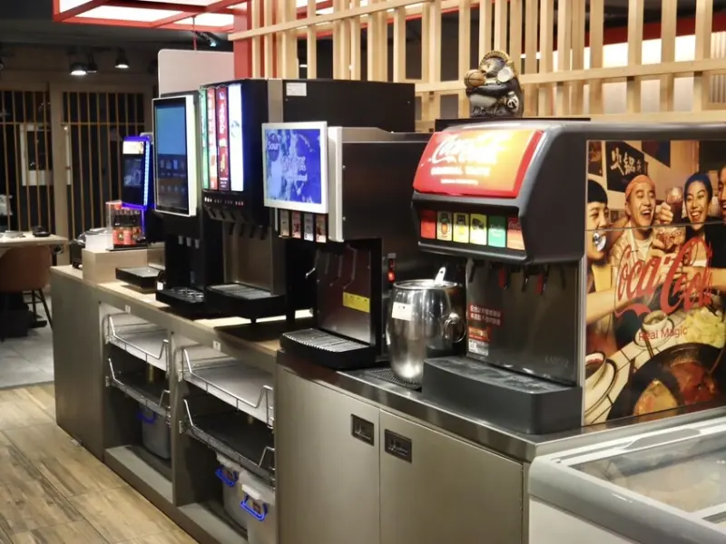▼還有整排無酒精飲品~可樂機、咖啡機、茶飲通通有