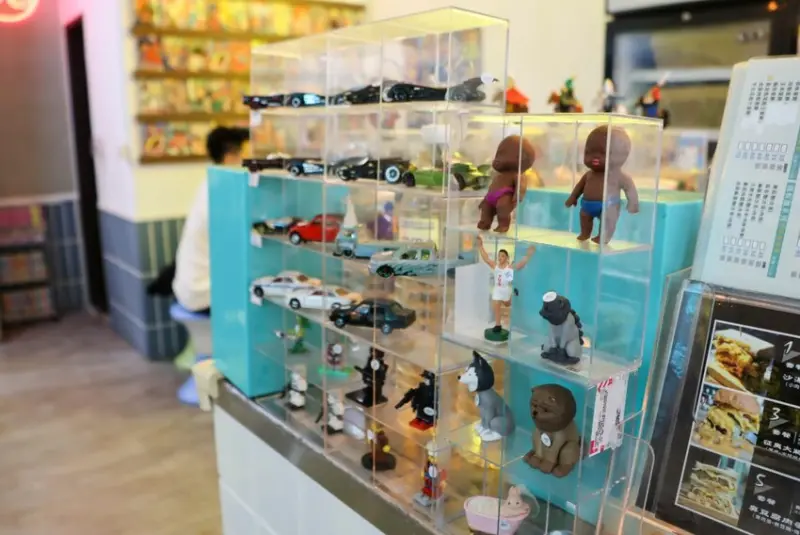 店內主要的裝潢色系以蒂芬妮藍色為主,複刻來自小時候阿嬤家的窗框