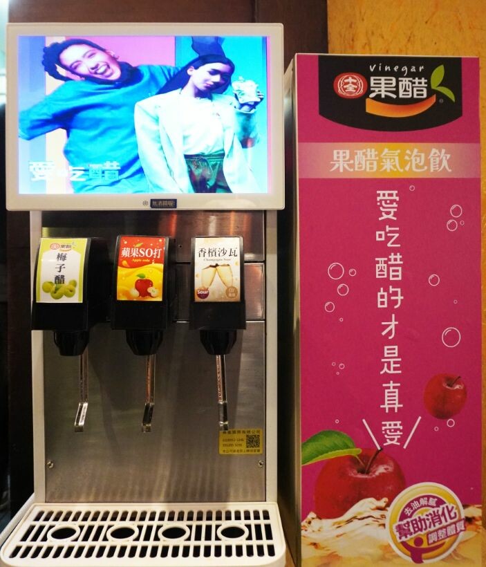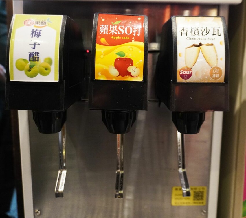 靠廚房一側的牆面,提供3款果醋氣泡飲,香檳沙瓦、蘋果SO打以及梅子醋。