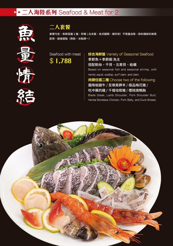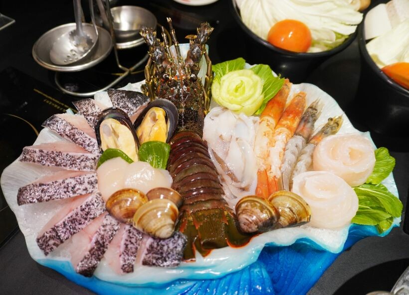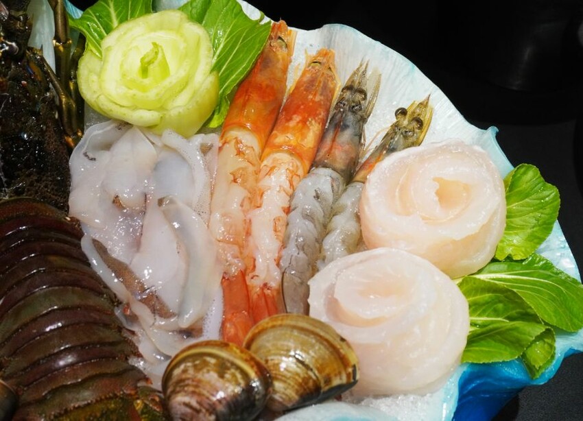 海鮮盤超大一盤,除了常見的白蝦、天使紅蝦、軟絲、蛤蠣、干貝及石斑魚片等食材,經過急速冷凍,放進鍋內烹煮,仍然可以吃到食材的新鮮。