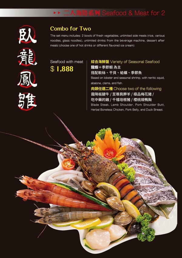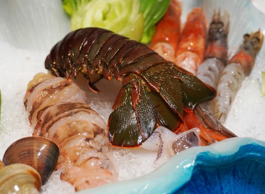 袁彬跟友人點的是臥龍鳳雛雙人套餐,海鮮盤食材豐盛,有龍蝦,白蝦跟天使紅蝦等新鮮海產