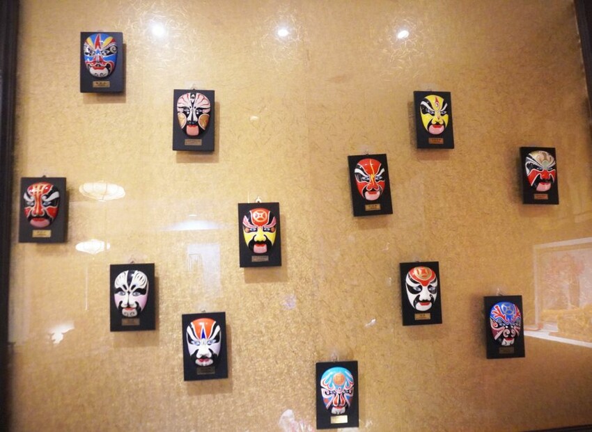裝潢擺設別具特色,加入中國古典風的元素,除了入口處的圓形層架,還有一面擺放多張四川換臉臉譜的牆面。