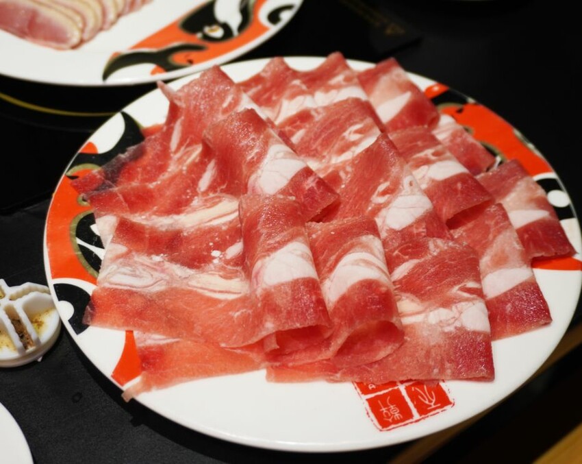 至尊肩胛羊,肉質Q彈,相當大一片,不論是在漢方麻辣鍋或是酸菜白肉鍋進行涮煮,吃起來味道都很讚。