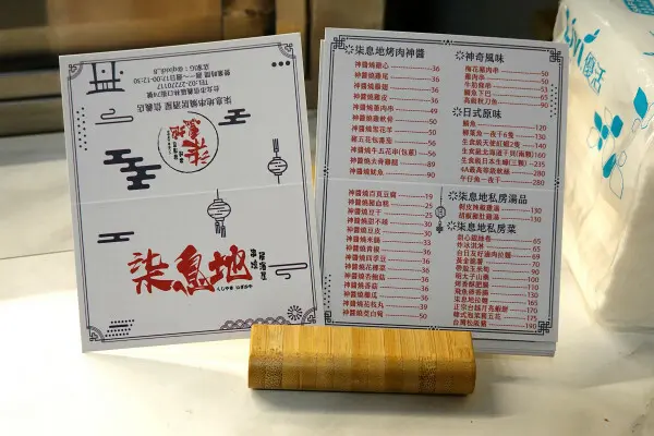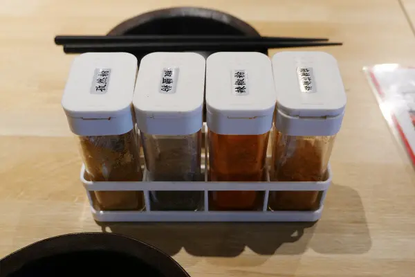 每桌都有放QR Code點餐單及一張優惠資訊,還擺有麻辣花椒粉、辣椒粉、椒鹽粉、孜然粉,想要加點辛辣感就可以隨時自己調味,讓每一串串燒更有層次。
