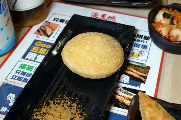 他們也有居酒屋裡少見的月亮蝦餅,正宗台越月亮蝦餅造型也很搶眼,一份有8片,份量大又厚實,外表炸得金黃酥脆,看起來就好好吃。