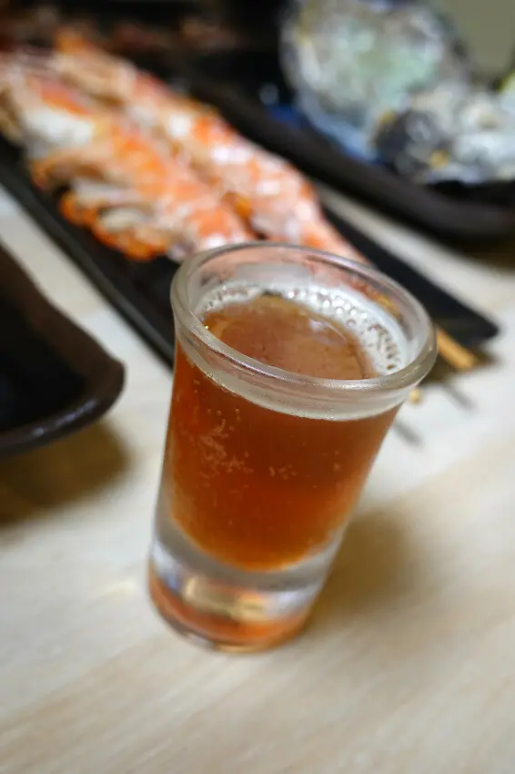 當天喝到的是用生啤酒跟野格利口酒特調的野格炸彈,5%濃度的野格炸彈喝起來清爽微甜,喝下去像有暖流溫潤胃腸,不會喝太醉又能享受恰好的微醺感。