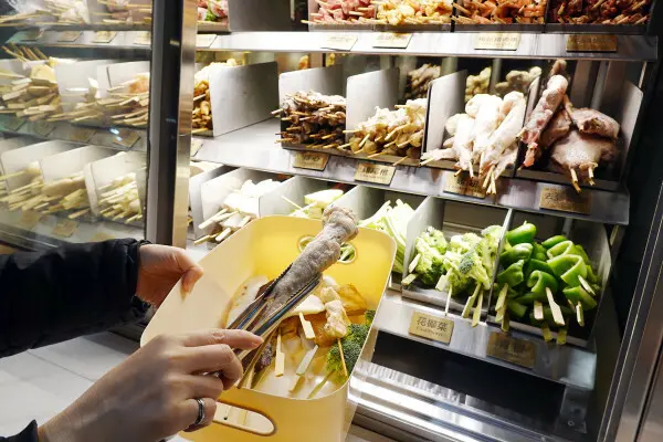 想吃什麼串燒都能去冰櫃夾自己愛的,有一種可以自己掌控美味的樂趣,串燒在玻璃櫥櫃裡排得又美觀又衛生,也讓人覺得特別放心。