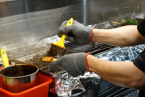 廚房完全透明,隔著玻璃能看到裡面忙碌的工作人員,感覺超安心!而且他們的秘製醬汁真的超級厲害,花了大半天熬製,十幾種配方,保證每一串串燒都超入味,這味道是外面吃不到的喔!