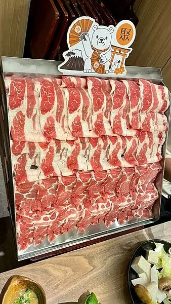 鍋泰暖的肉盤端上桌,真的是誠意滿滿!切的厚薄度適中,嫩肩霜降牛的油脂分布適中,肉質軟嫩,口感略帶彈性。