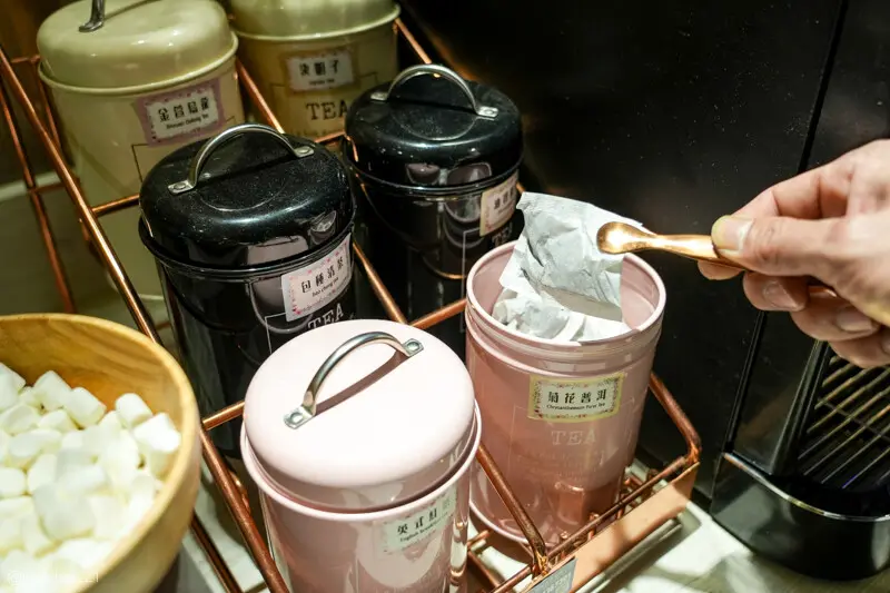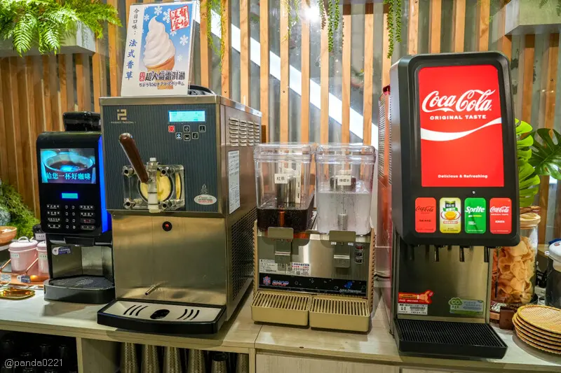 飲料有碳酸飲料、檸檬水、紅茶、熱飲機,還有各式茶包可以自己沖泡。天冷時泡一杯茶包,暖暖身剛剛好!