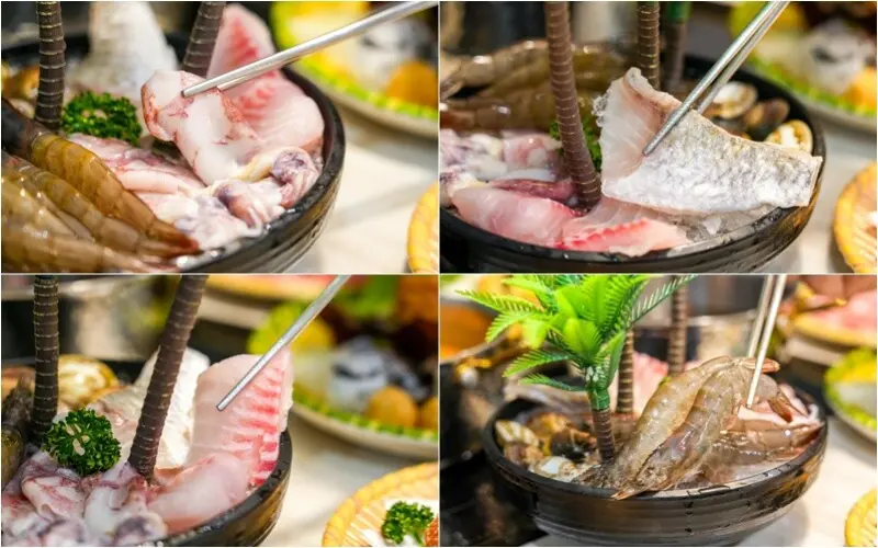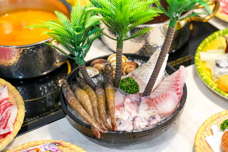鍋泰暖桃園中壢店的擺盤也充滿南洋風情,選用藤編盤子呈現食材,海鮮盤上還特地擺放椰子樹裝飾,真的很有趣!來鍋泰暖,不僅能品嚐泰式火鍋,還有多樣點心和飲品可以選擇,選擇相當豐富!