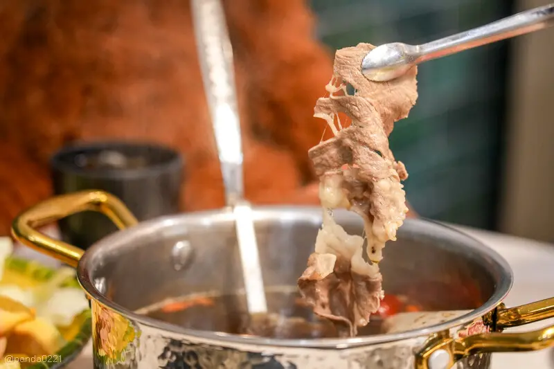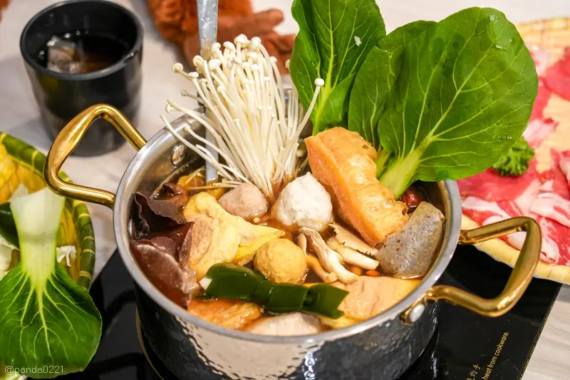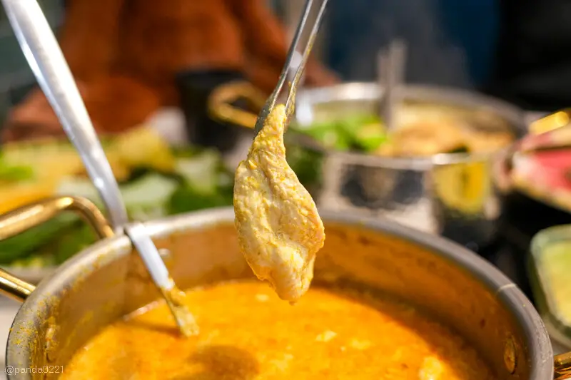 鍋泰暖將南洋風味帶入火鍋,特別講究湯頭的調製。食材放進去之前,記得先嘗一口湯頭。咖哩叻沙湯頭的特色是濃醇的椰奶與香料香氣,湯底濃郁,辣中帶點甜,涮肉片更是好吃!
