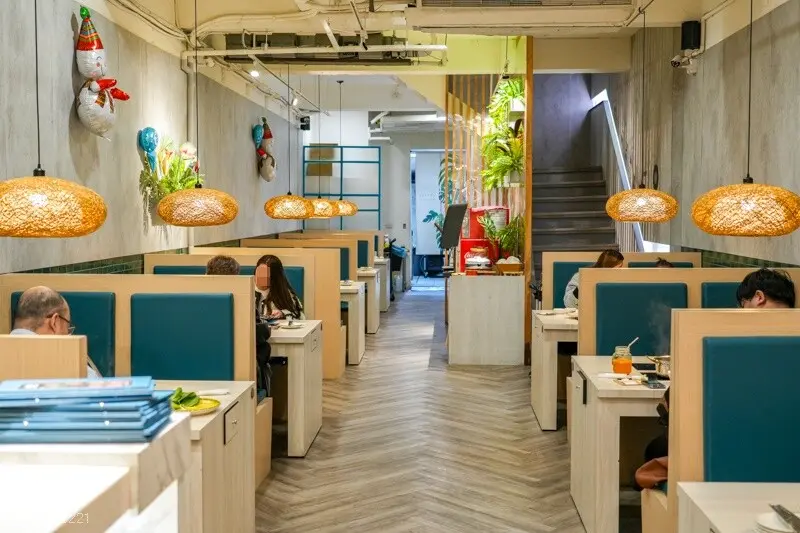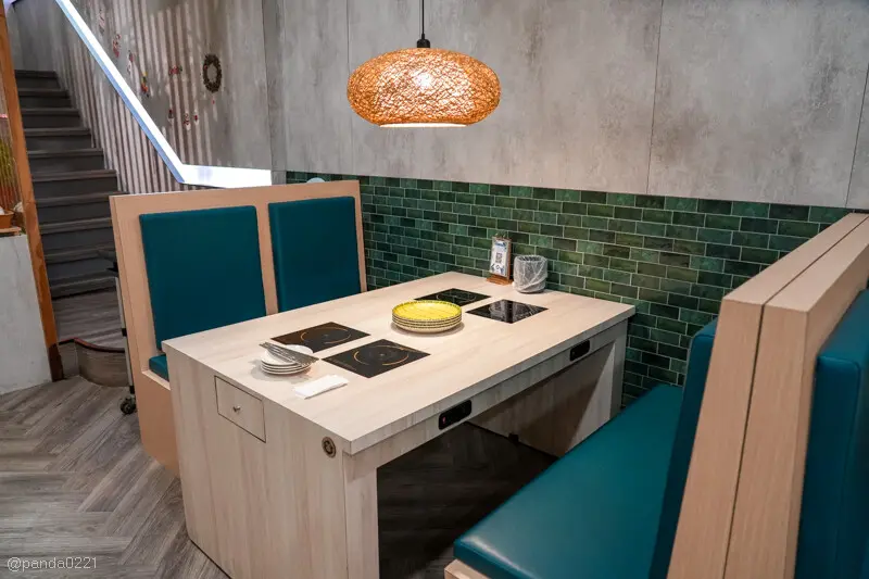 鍋泰暖桃園中壢店有雙層樓的用餐空間,裝潢以南洋風情為主,融合植栽、藤編吊燈和猩猩玩偶點綴,明亮有質感。搭配舒適沙發座位區,空間寬敞,主要為4人桌。