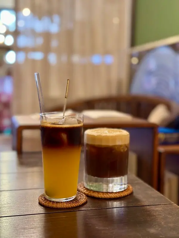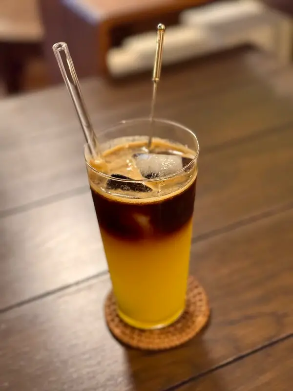 這杯飲品果然美得令人讚嘆!咖啡、柳橙汁和蘇打水的創新搭配,呈現酸甜清爽的口感,再加上漸層的美麗色彩,既滿足了味蕾,也是一場視覺盛宴。不禁讓人聯想到曼谷流行的柳橙咖啡。