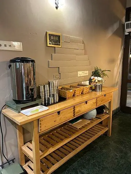 店內的餐具是自助取用,旁邊還備有各式調味料與辣椒。另外,還提供免費的香蘭綠茶,口感清新又特別,喝起來非常舒爽!