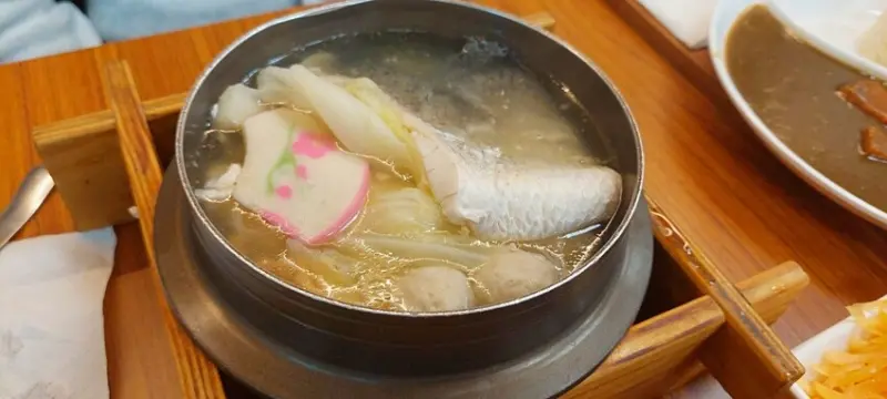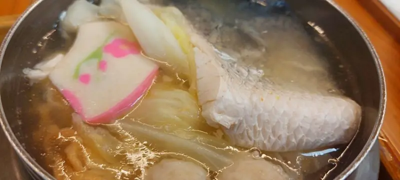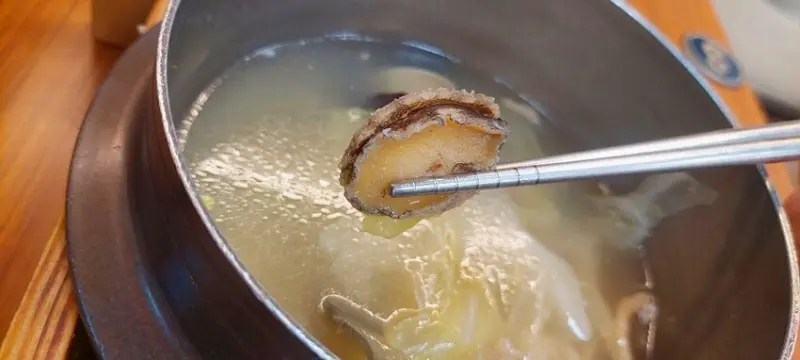 內容物有魚肉還有丸子以及九孔和鮑魚及蛤蜊與豚骨的湯底加在一起味道極為鮮甜美味,