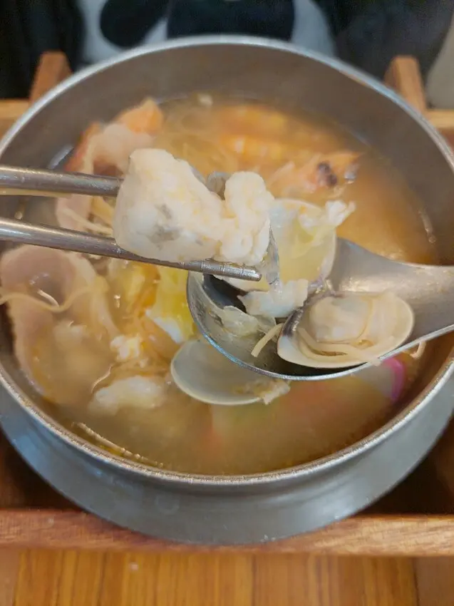 配料也很豐富,有蝦子、蛤蜊、火鍋料和青菜高麗菜,雖然簡單,但每一樣都很新鮮。