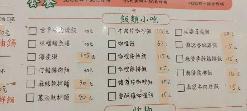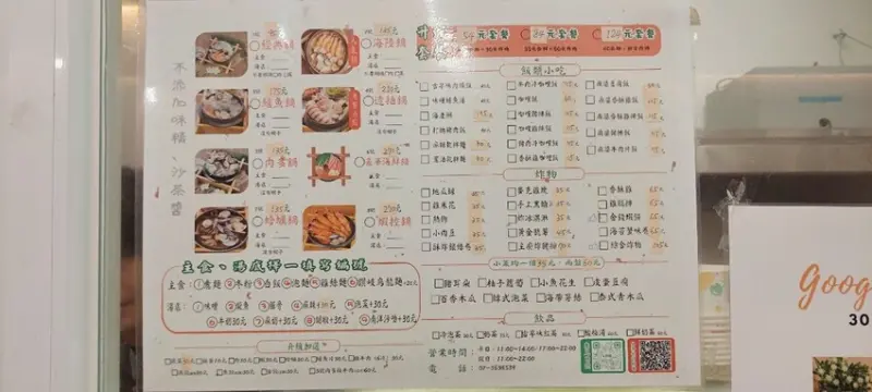 菜單相當的豐富,有鍋燒還有飯類小吃和炸物等,以及飲料也有,
