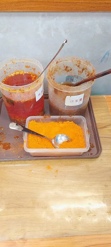 旁邊還有調味的辣味粉以及醬汁辣椒等,提供你食用!