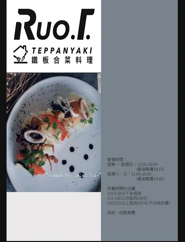 備註:文章皆有時效性,如有修正皆以Ruo.t Teppanyaki 鐵板料理為主