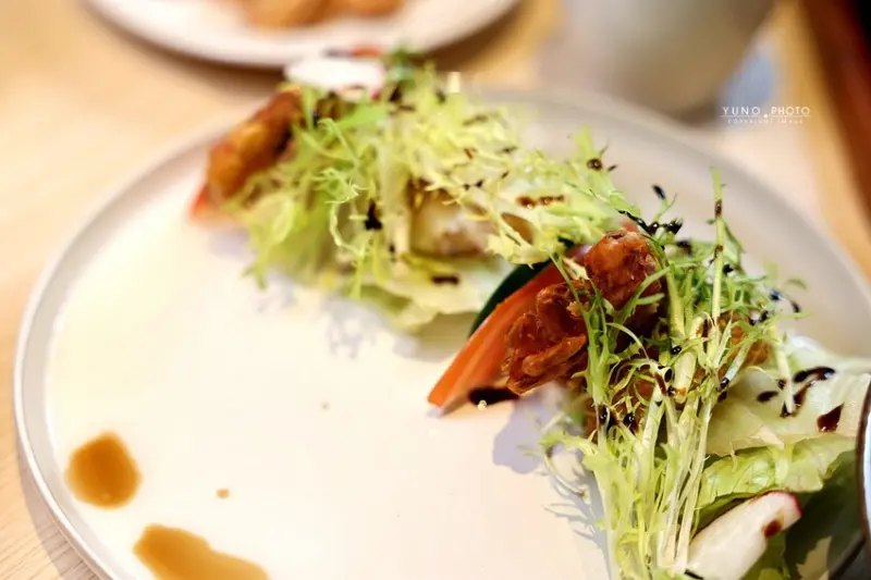 酥炸的軟殼蟹外皮酥脆 蟹肉細膩鮮甜 與清爽的綠葉沙拉和特調醬汁結合 口感豐富卻不失清爽 為套餐增添了一抹輕盈