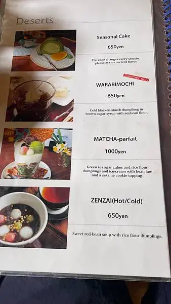 店內提供日文與英文菜單,價格相同不用擔心看不懂,就連日式傳統點心也有詳細的介紹,非常貼心。