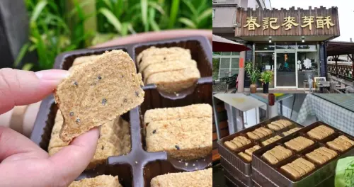 春記麥芽酥從早期推車的小攤子到現在自家鐵皮屋販賣至今,主打每日手工現做的麥芽酥,研發改良出符合大眾口味又不失健康的味道,沒有添加物,不甜不膩不黏牙,香Q口感老少咸宜,小小的店面有著很顯著的大招牌,很難不注意到