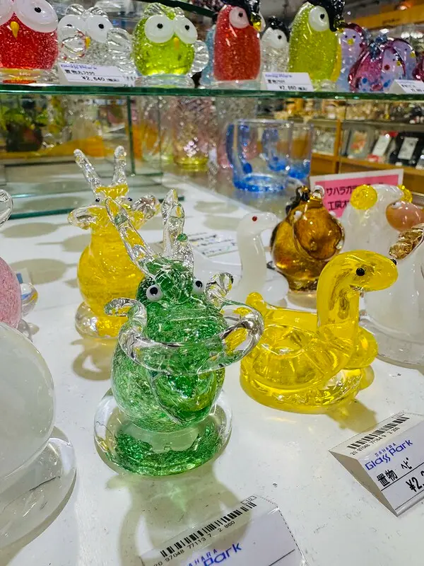 另外還有一些玻璃畫作,讓人不禁驚嘆:「這真的是用玻璃做的嗎?」園區內的展品從精美的小飾品到優雅的琉璃擺件應有盡有,甚至還包括北上川出產的砂鐵與南部鐵器,每一件都充滿了設計者的巧思與精湛技藝。