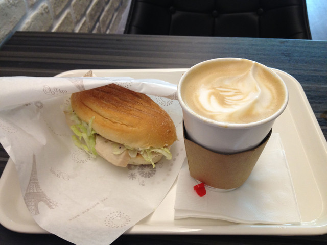 拿鐵奶泡綿密、咖啡濃郁,只可惜店員送餐時加上了蓋子,毀掉了拉花。