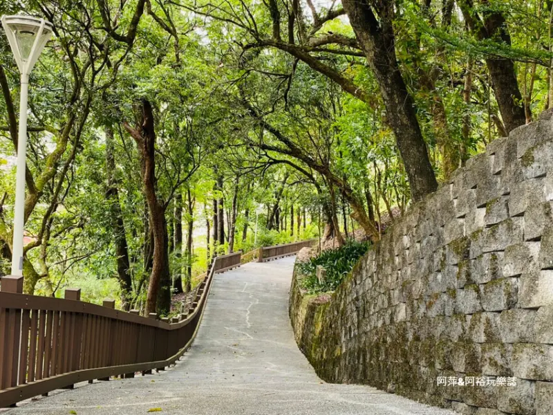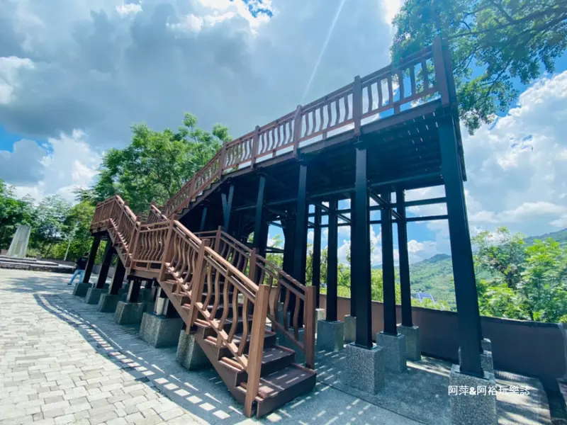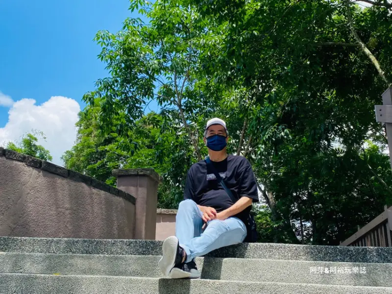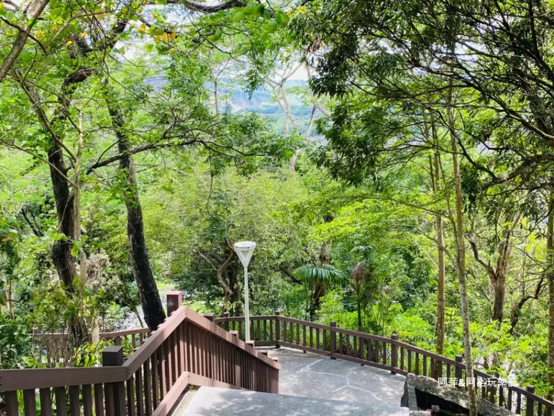 在甲仙公園,沿著階梯慢慢往上爬,如果覺得累了,還可以在旁邊的小涼亭稍作休息。