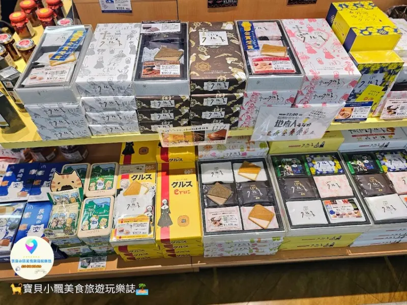 走進物產館,最吸引目光的就是長崎的經典特產——長崎蛋糕!這款蛋糕以鬆軟濕潤的口感著稱,每一口都能吃到蜂蜜與蛋的濃郁香氣。底部撒著微脆的砂糖,為它增添了特別風味。店內還有多種不同口味可選,更別錯過外型修長的年輪蛋糕「長崎物語」,裡面包滿濃郁奶油,一口一個,超級方便!