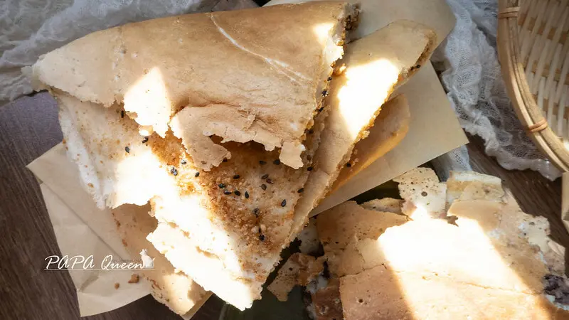 經典花生芝麻口味(老闆建議試試花生加香菜,味道也很棒)。回家後,因為熱氣悶住,餅皮變得Q彈,濃郁的花生香氣更是讓人垂涎!如果喜歡酥脆的口感,可以用烤箱稍微加熱一下,就能恢復剛出爐的脆皮口感!