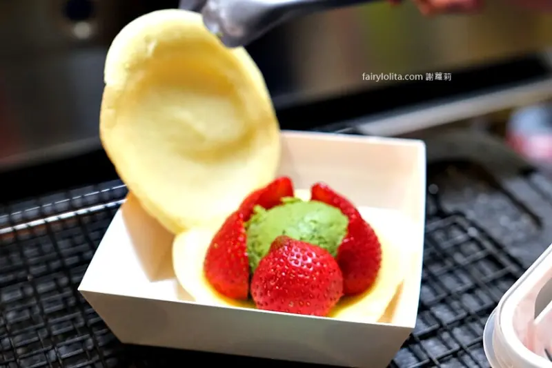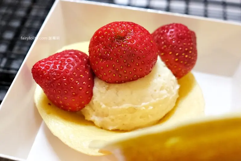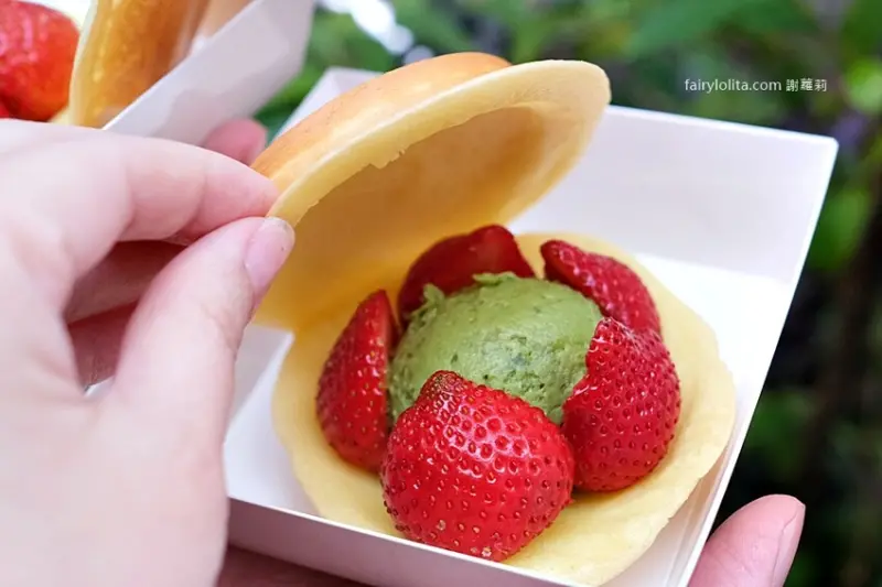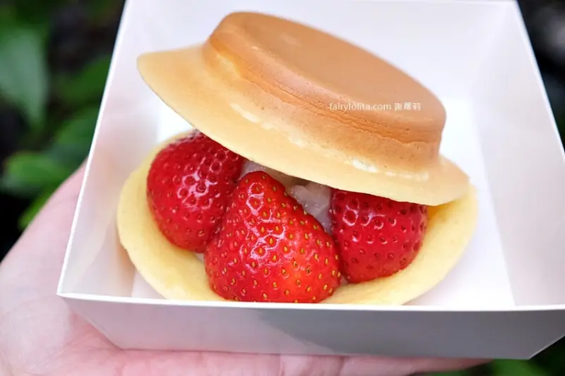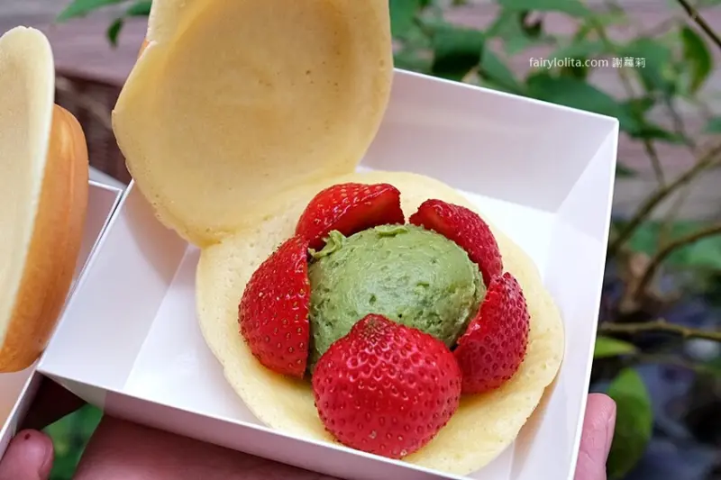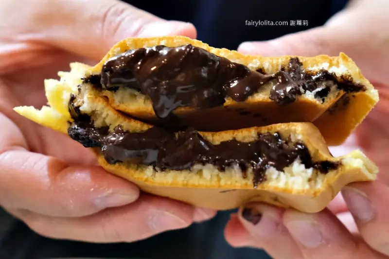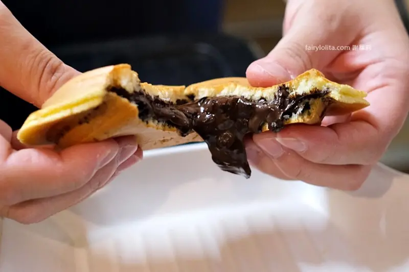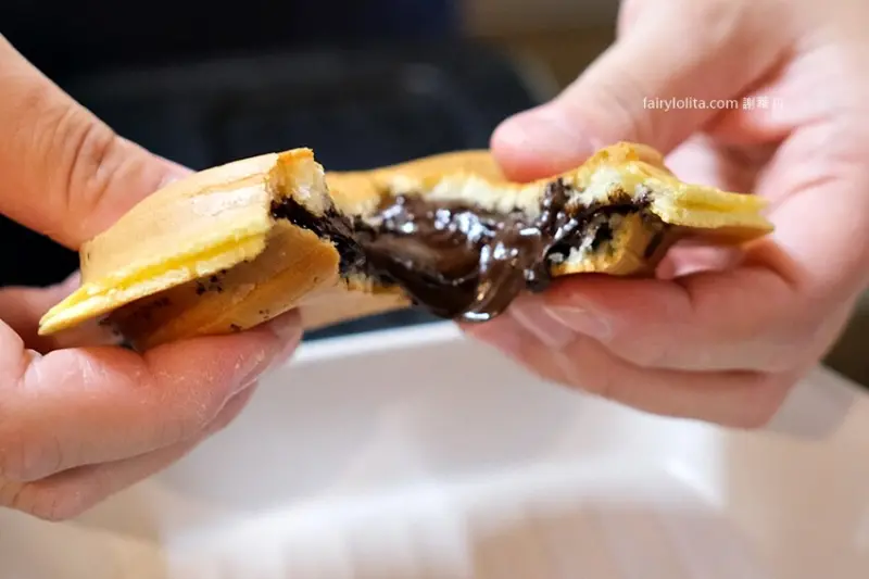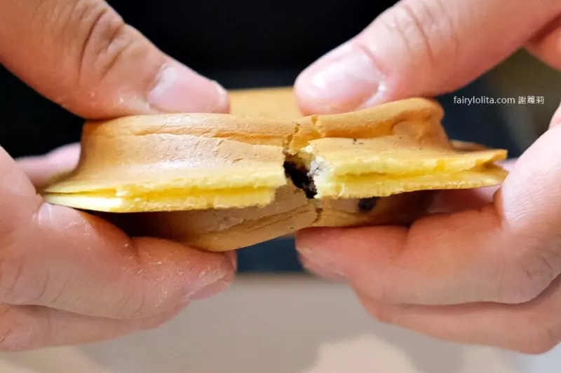 我們直接就在現場嗑起來,因為是日式作法,餅皮比較偏軟,不是脆脆的那種,吃起來很像鬆餅,是比較軟綿的質地。
