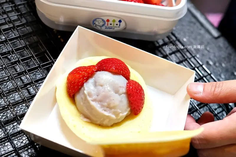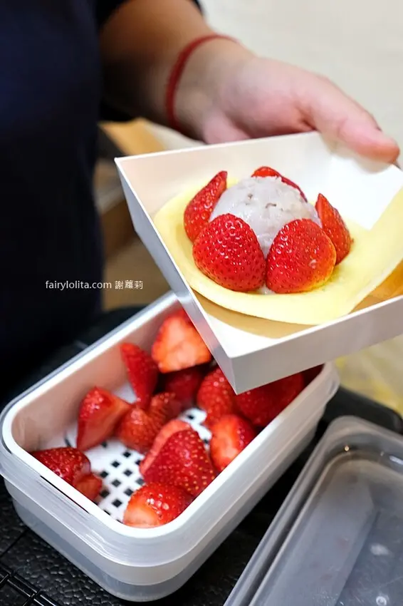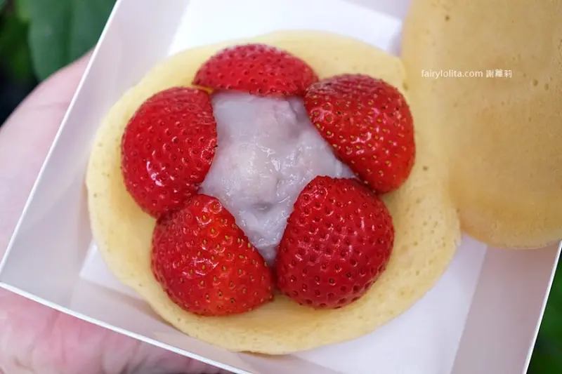 只能說如果你是芋頭控,千萬不能錯過這個口味,使用大甲芋頭,餡料吃起來綿密而且還有芋頭的顆粒在裡面,而美姬草莓帶點脆感,超多汁,而且真的真的超級甜,完全不輪日本草莓,重點是草莓個頭還不小。