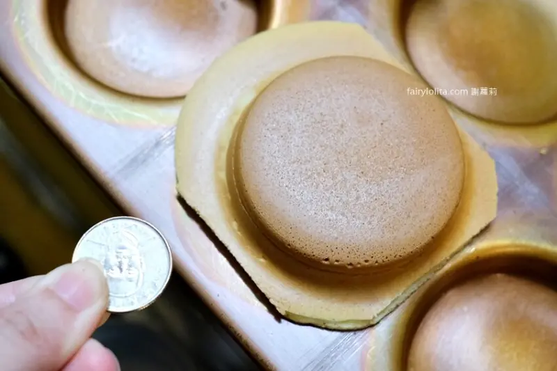 看看車輪餅的個頭,完全碩大到不行,拿出十元銅板比一比,錢幣相較之下根本就是小兒科!XD