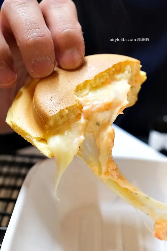 雙起司還有爆滿的餡料,竟然只賣45大洋,我都想說,「春花日式車輪餅」的老闆不是出來賺錢,而是出來交朋友的,要不要這麼便宜阿?XD